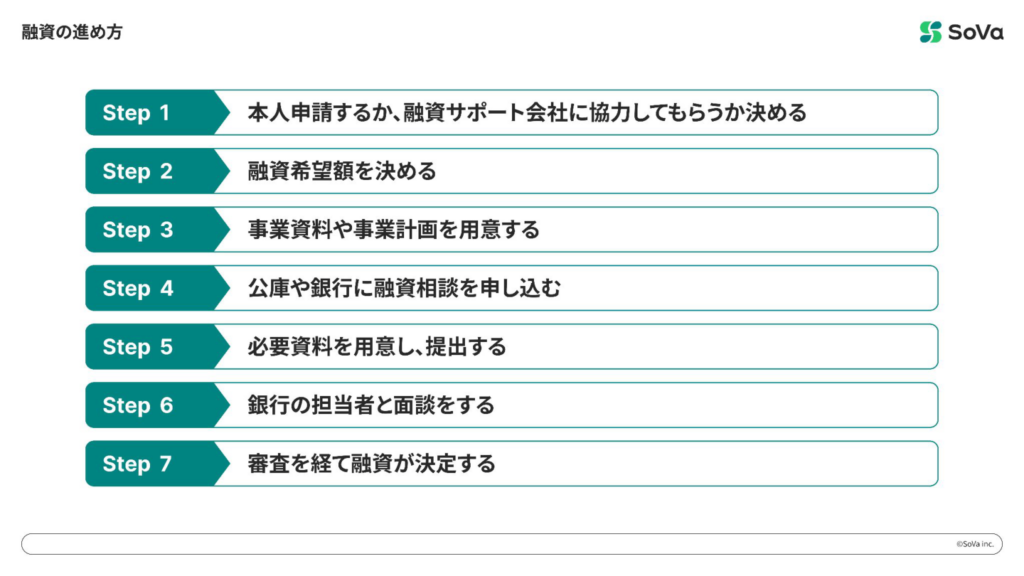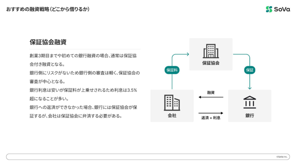 ⑤融資の基本ルート:日本政策金融公庫→保証協会融資→プロパー融資の順で進む