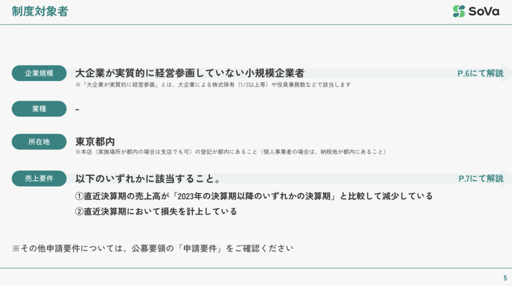 補助対象経費や売上要件の詳細は、以下の資料をご覧ください。