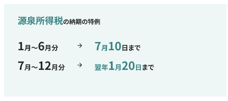 しかし、一定の条件を満たす場合、「源泉所得税の納期の特例」という制度を税務署に提出することで、