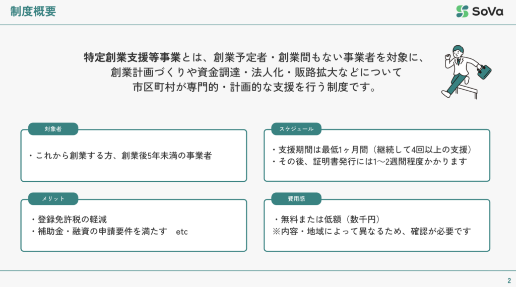 創業予定者・創業間もない事業者を対象に、創業計画づくりや資金調達・法人化・販路拡大などについて市区町村が専門的・計画的な支援を行う特定創業支援等事業のご紹介です。